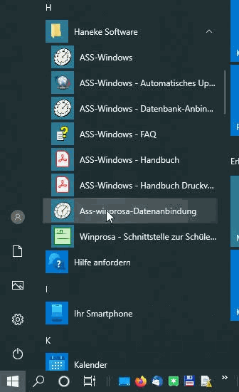 Starten Sie nun im Startmenü von ASS das Programm winprosa-Datenanbindung.